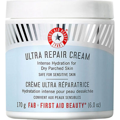 Relieve dry and distressed skin with the first aid beauty ultra repair cream;